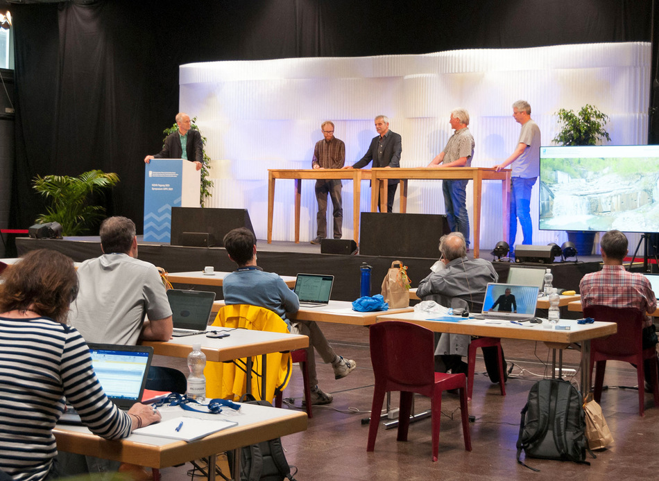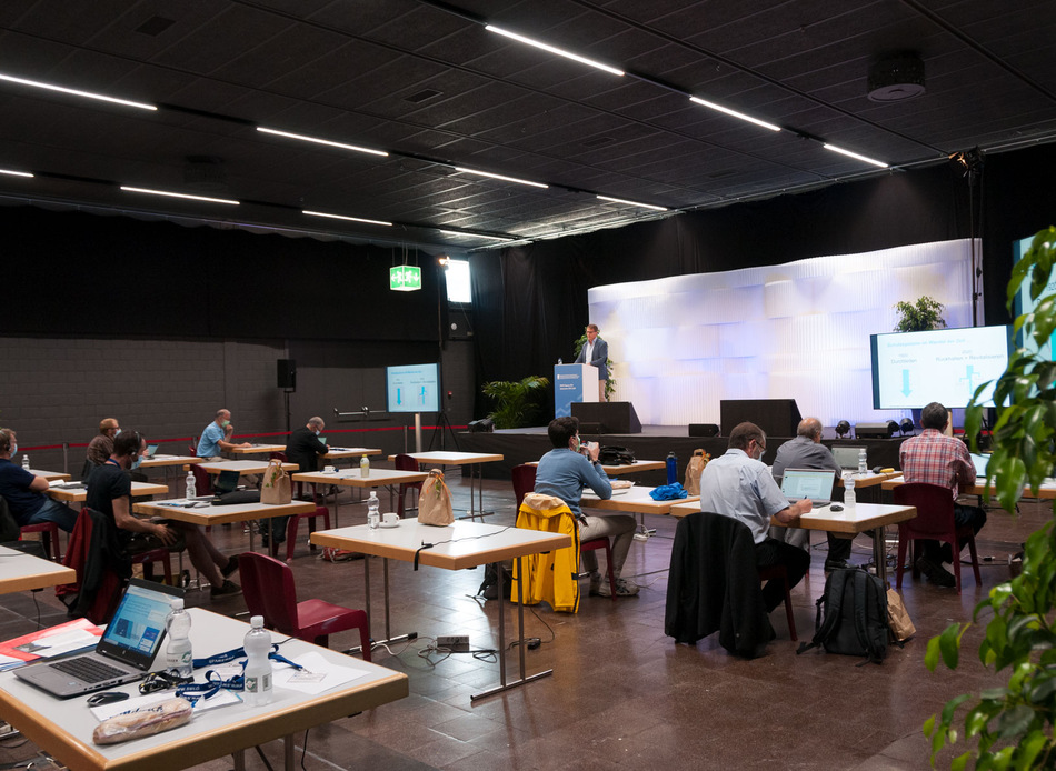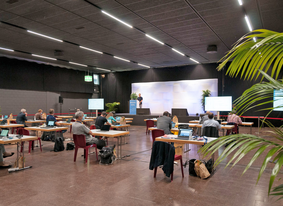 Während die Referenten am Aufnahmeort in Thun vor Ort waren, konnten die Tagungsteilnehmer die Vorträge und am Bildschirm mitverfolgen und über die virtuelle Plattform aktiv teilnehmen.